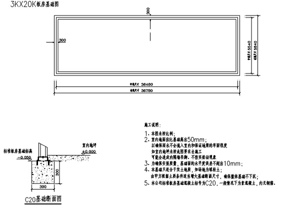 鑫雅活動(dòng)房條形地基:中到中:1.82x+0.18(此處x為K數(shù))